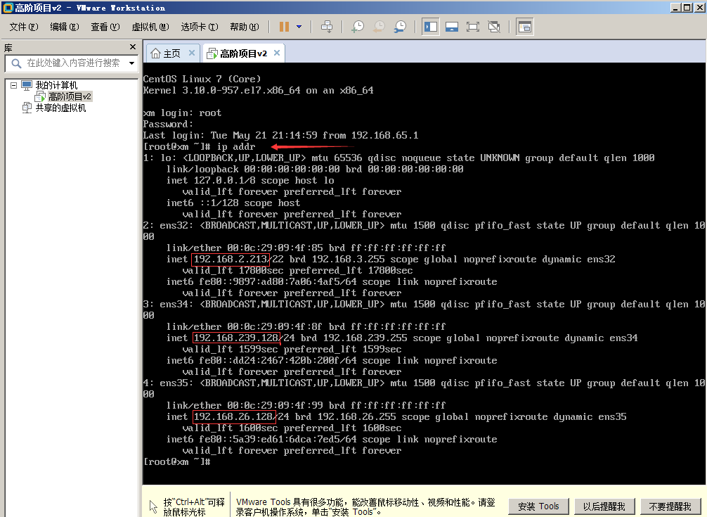 ip addr命令查看 IP 地址,IP 地址会有多个,选择其中任意一个都可以访问,但是建议使用局域网网段的 IP