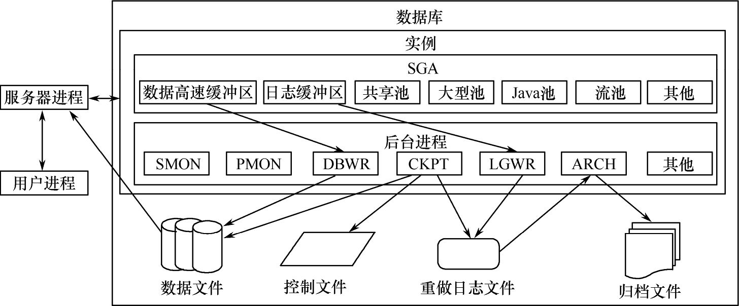 其中存储结构包括物理存储结构和逻辑存储结构,是数据存储及空间分配的基础;实例是构成 Oracle 数据库的软件结构,包括内存结构和后台进程,是数据库运行与管理的基础。